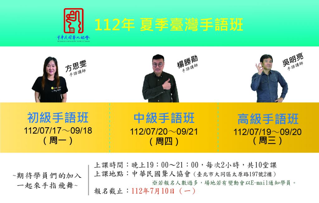 上課地點:中華民國聾人協會(臺北市大同區太原路197號2樓)
