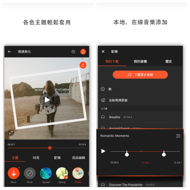 – 添加自己喜歡的音樂,甚至你可以錄製自己的聲音!