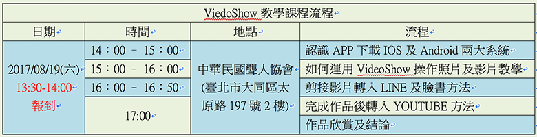本課程在培養學生數位與視覺設計整合能力,藉由簡單 易學的 VideoShow  APP 編輯軟體, 以剪輯影片、上字幕..…等為實例,激發學生的創造力,做出個性化的作品,讓學生可以成為剪輯影片的創意設計師。